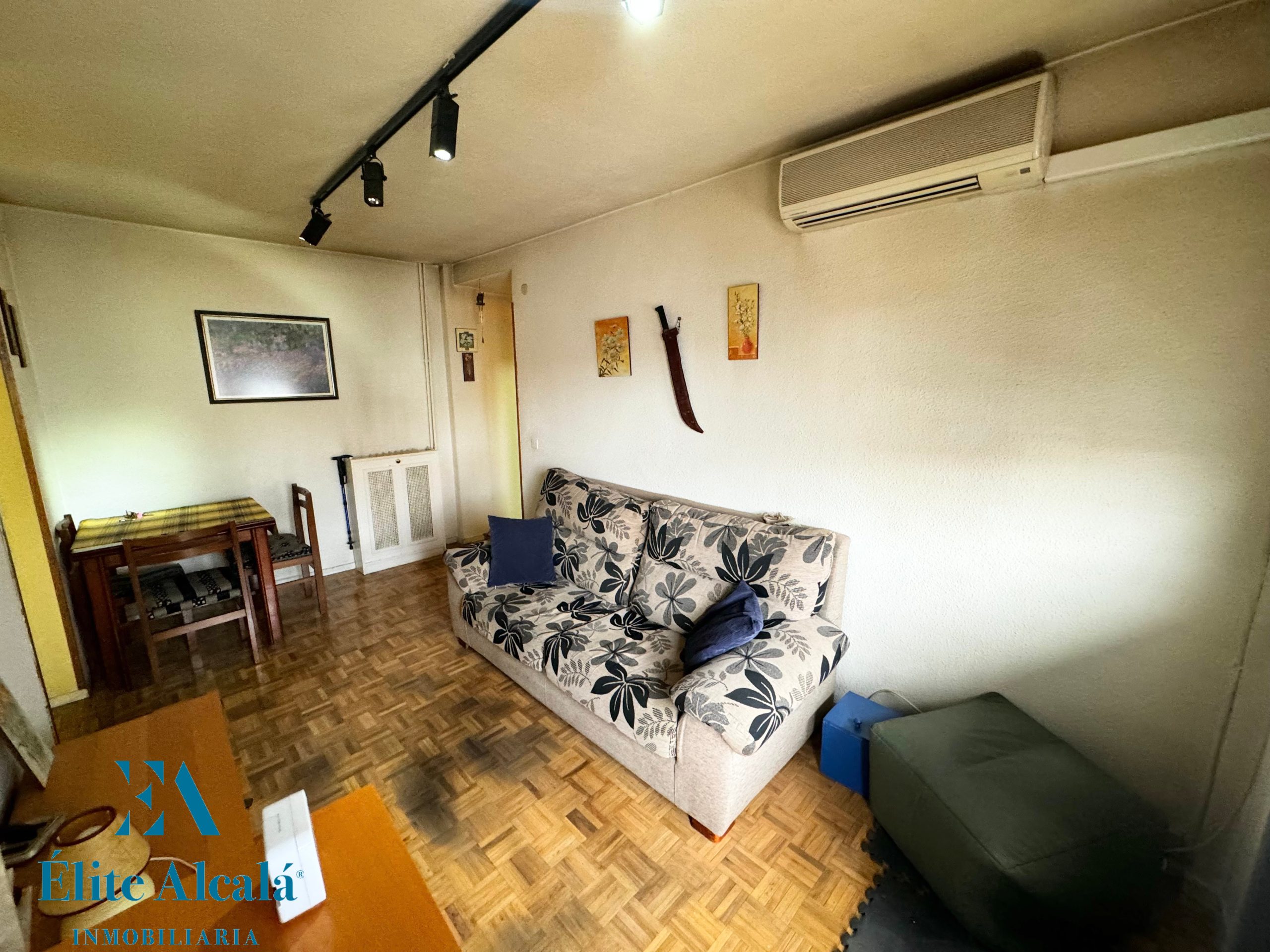 Aire acondicionado en salón y radiadores de hierro fundido con calefacción central.