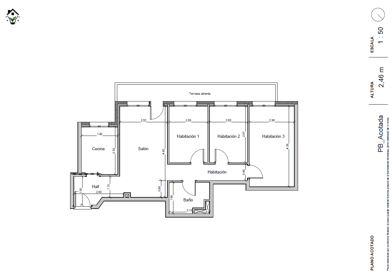 La vivienda cuenta con una superficie construida de 69m2, distribuida de la siguiente forma: